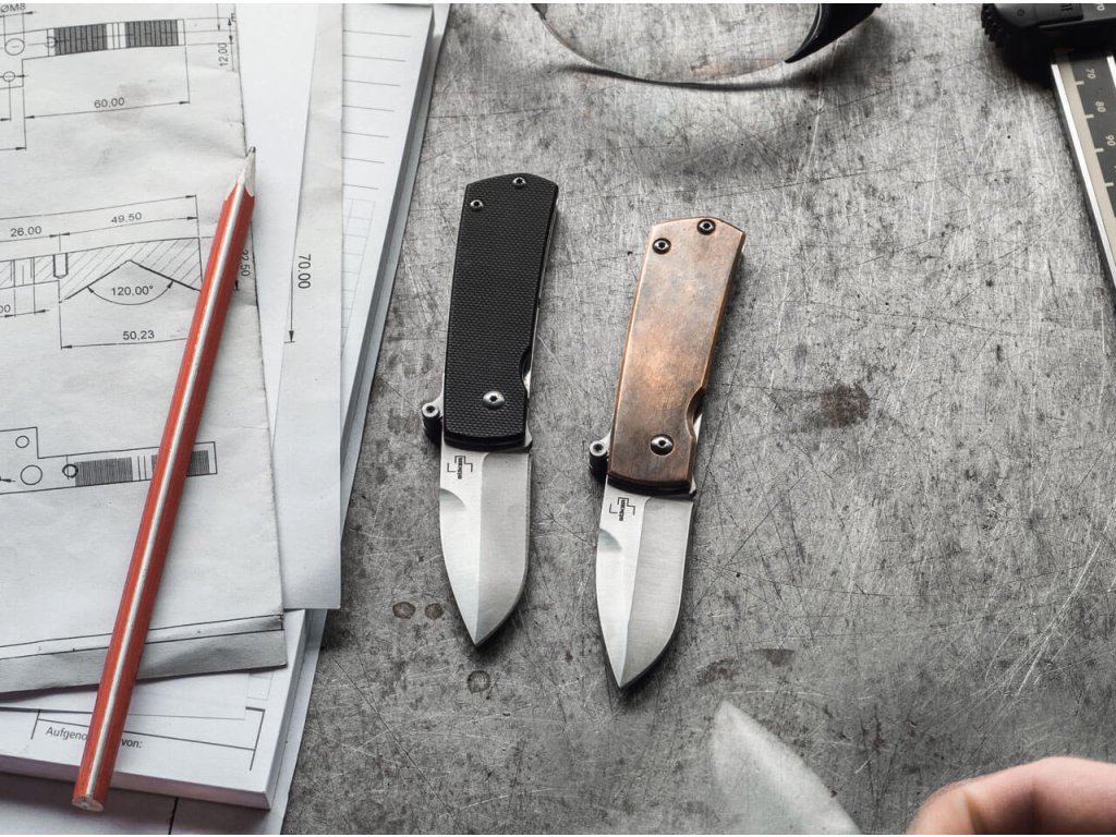S Boker Plus Shamsher navrhli Darriel Caston a Stan Mojzis minimalistický automatický nůž, který je s celkovou délkou téměř 12 centimetrů rozhodně jedním z nejšikovnějších svého druhu. Saténová čepel z D2 se automaticky otevírá silou pružiny, když je stisknuta spoušť, připomínající klasický pinballový stroj, a je bezpečně zajištěna linerlockem. Působivé ploché váhy s rukojetí jsou vyrobeny z mědi, takže se na nich postupem času vytvoří jedinečná patina. S malým integrovaným otvorem na šňůrku a vysoce kvalitním nylonovým pouzdrem pro skladování.